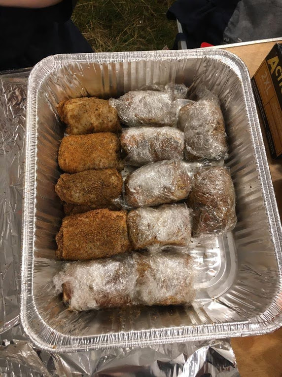 We intentionally deferred chicken prep until Saturday night. It was was Rachel’s call, as it fell to her to do chicken prep as Debbie, our teammate that usually handles the chicken, did not make the trip. The ribs were not available yet, so we cleaned up and headed out.